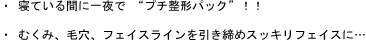 夜洗顔後、ゲルクリームなどで肌を整え、適量を手に取り顔全体へ薄くのばしてお休み下さい。翌朝は洗顔後、ゲルクリームなどで保湿保護して下さい。